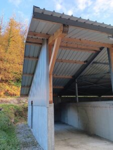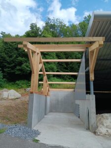 Création d’un abri à sel – 2ème phase : Charpente et toiture : Juin à Octobre